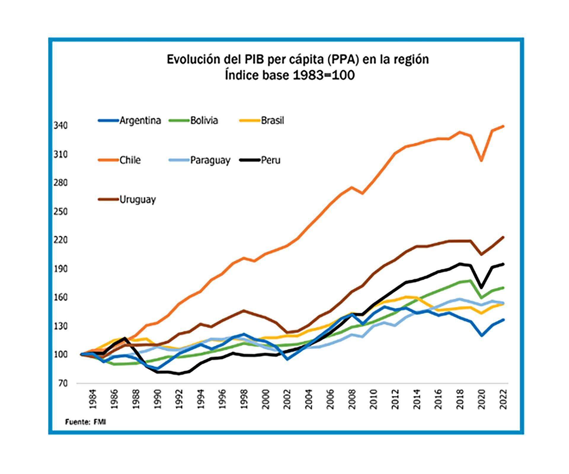 En materia de desarrollo económico y social, dice AEA, el país ha tenido resultados “muy insuficientes”. El pobre desempeño del ingreso por habitante comparado con el de otros países de la región -fundamenta- “así lo demuestra”. Además, resalta “el fuerte aumento en la proporción de habitantes en situación de pobreza, que pasó de menos de un 20% del total en la década del ochenta a aproximadamente un 40% en la actualidad”, lo que considera “otra evidencia contundente”.